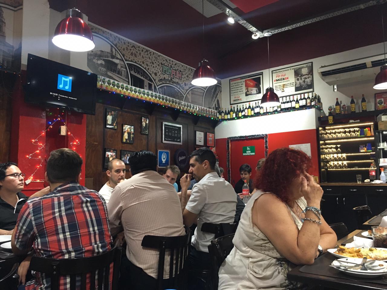 El ambiente resultó ser muy agradable y calentito, lleno de fotos de personas famosas que en su momento habían concurrido al lugar como, Maradona, Pablo Echarri, Miguel Granados y Francella. Se escuchaba una música, era muy tradicional (una característica clave de la franquicia), folclore y tangos; luego de un tiempo esta cambio a algo más actual y moderno debido a una graciosa y amable discusión entre los empleados más jóvenes y los veteranos.