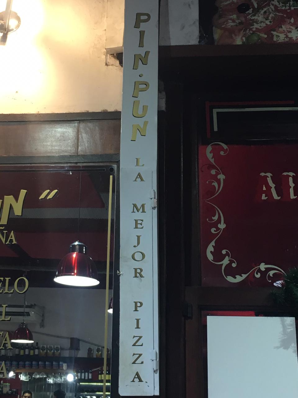 Media cuadra antes ya se siente, ya se huele. Ese olorcito inconfundible a masa horneándose, a salsa cocinándose, a muzzarella derritiéndose. Todo lo que un verdadero fanático de la pizza espera, Pin Pun lo tiene. Esta local clásico, que hoy en día tiene varias sucursales en Capital Federal e incluso en el Conurbano bonaerense, se define en sus redes como un «bodegón porteño», pero se sabe bien que a pesar de su variado menú sus fuertes son las pizzas.