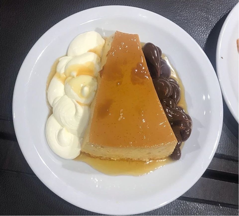 Tras una agónica espera, llegó nuestra pizza. Agónica, sí, pero justificada. Auténticamente clásica, al molde, crocante por fuera y más blandita por dentro. Rebozaba de queso muzzarella Vidal, atributo del que hacen alarde (por su cantidad y calidad) con justa razón. El tomate estaba en su punto justo, calentito pero no chamuscado por el calor del horno, y la cantidad de ajo era perfecta. Quedamos mas que satisfechos y no pudimos terminarla, pero por suerte Pin Pun ofrece la posibilidad de que los comensales nos llevemos las sobras bien empaquetadas. Igualmente, obvio que nos quedaba un lugarcito para el postre. Un consejo: traten de compartir, porque las porciones tanto de salado como de dulce son enormes. Nosotros nos deleitamos con un clásico argentino: flan con crema, caramelo y dulce de leche, una auténtica bomba que se notaba era casera, como el que nos hacía la abuela cuando éramos chicos.